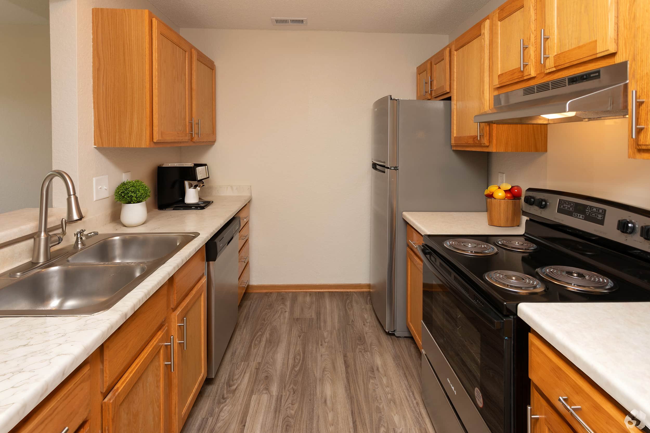 In-unit laundry, private garages, and open green space—plus a basketball court and direct access to parks and nearby scenic trails.